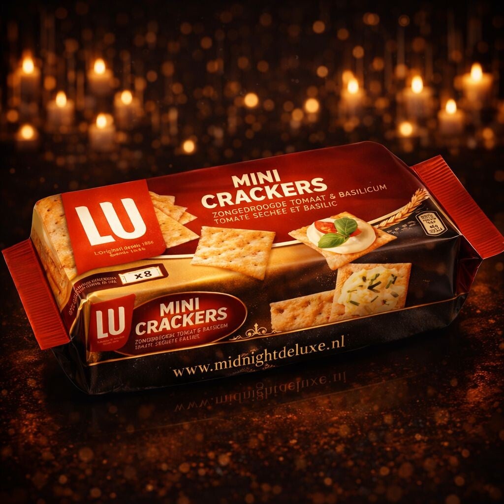 Wanneer de avond overgaat in nacht, vraagt het moment om iets bijzonders. Deze mini crackers met zongedroogde tomaat en basilicum zijn verfijnd van smaak en perfect voor de stille, luxe uren na zonsondergang. Knapperig, elegant en subtiel gekruid – een balans tussen Mediterrane warmte en nachtelijke verfijning.